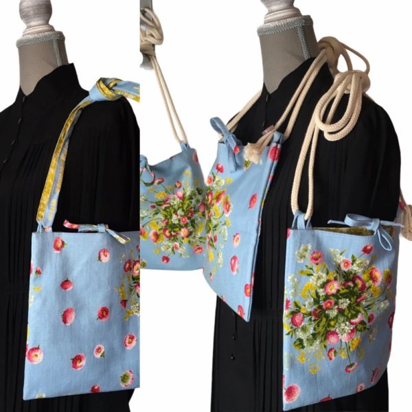 Je vous invite à découvrir mes créations de sacs cabas et pochettes en tissus d’ameublement vintage : Les Cabas de la Grande.