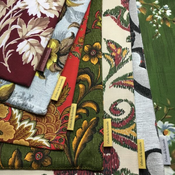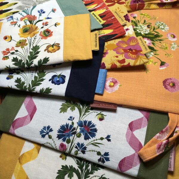 Egalement, vous ne me verrez jamais positionner l’étiquette sur le motif principal, au centre de l’ouvrage, comme cela se fait beaucoup par ailleurs. Ma marque est présente en signature, c’est important, certes. Mais le plus important reste l’imprimé vintage que j’ai travaillé et que je souhaite mettre en valeur.