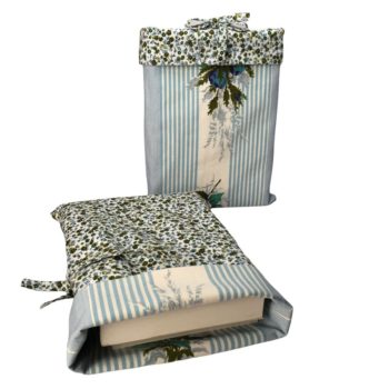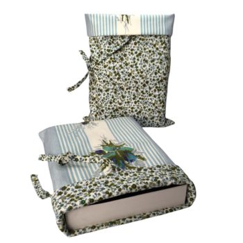 La pochette à livre en tissu est doublée et parfaitement réversible. Les coutures ne sont pas apparentes, et les finitions sont faites à la main au point invisible.