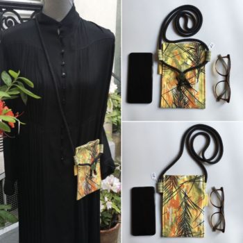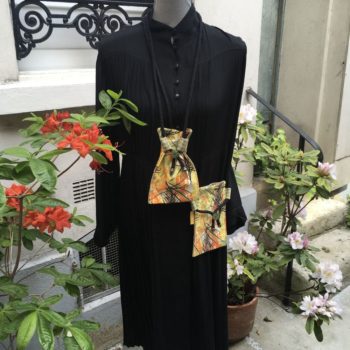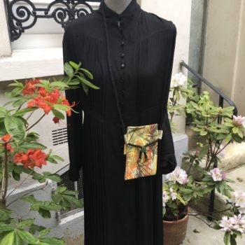 La bandoulière est en corde de coton tressée, de couleur noire, et de 6mm d’épaisseur.