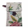 Pochette réalisée dans un tissu d’ameublement vintage en coton des années 1940s à 1960s imprimé à bouquets de fleurs roses, jaunes, bleues sur fond vert prairie. Doublure coton polyester en tissé jacquard motif vichy bleu ciel.