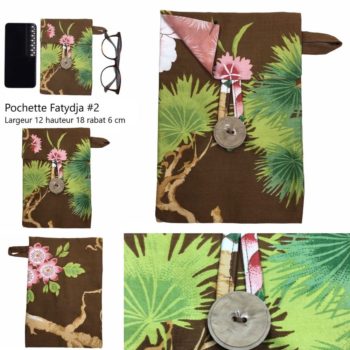 Pochette Fatydja #2. Largeur 12 cm hauteur 18 cm rabat 6 cm.