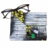 Les lunettes présentées sur les photos sont un élément de décor, pour donner une échelle des dimensions. Pliées elles mesurent 14,5 cm sur la largeur et 4,5 cm sur la hauteur (lunettes grande taille adulte).