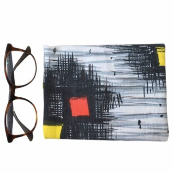 Pochette doublée toile vintage 1950-1960s Los Angeles abstrait noir jaune vert rouge gris coupon ancien rare avec bouton vintage.