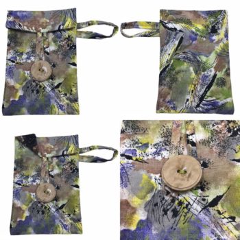 Petite pochette #1 : Largeur 9,5 cm hauteur 14 cm rabat 3,5 cm.