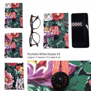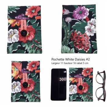 Pochette White Daisies #3. Largeur 11 cm hauteur 15,5 cm rabat 6 cm.