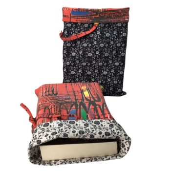 Grande pochette à livre, poche de protection en tissu, doublée et réversible avec revers pour adapter la housse à son contenu.