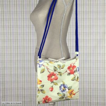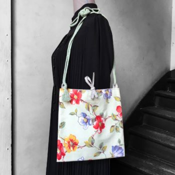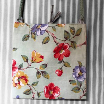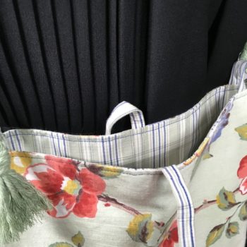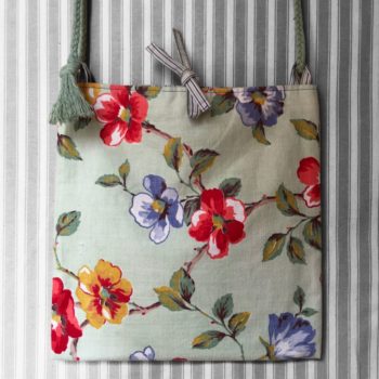 Fait main en France, création originale. Sacoche lavable en toile. Sac réversible zéro déchet. Bagage souple chic stylé. Léger solide pliable durable. Idée cadeau femme. Inspiration rétro, vintage. Tissu d’ameublement upcyclé, surcyclé, revalorisé. Eco-responsable réutilisable.