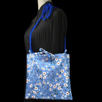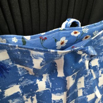 Le verso (doublure) est un coton contemporain imprimé de petites fleurs sur fond bleu.