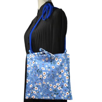 Fait main en France, création originale. Sacoche lavable en toile. Sac réversible zéro déchet. Bagage souple chic stylé. Léger solide pliable durable. Idée cadeau femme. Inspiration rétro, vintage. Tissu d’ameublement upcyclé, surcyclé, revalorisé. Eco-responsable réutilisable.