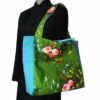 Le motif est présent sur les faces A et B du sac (photos : face A, face B, détails, doublure, poche). Les anses sont réalisées dans les mêmes toiles que le sac.