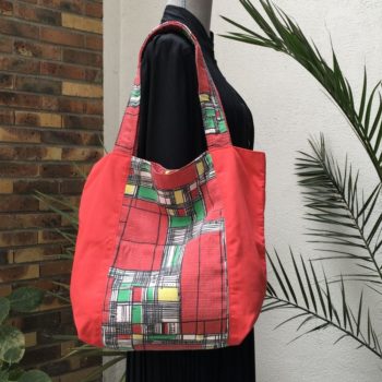 Les finitions, en couture anglaise, augmentent la résistance. Les deux épaisseurs de toile, recto et verso, sont solidaires et forment une seule pièce de tissu biface. Ainsi, le sac est léger et très solide, avec coutures renforcées. Il restera agréable même pour des charges lourdes. Les anses sont larges et confortables, doublées, prévues pour porter à la main comme à l’épaule.